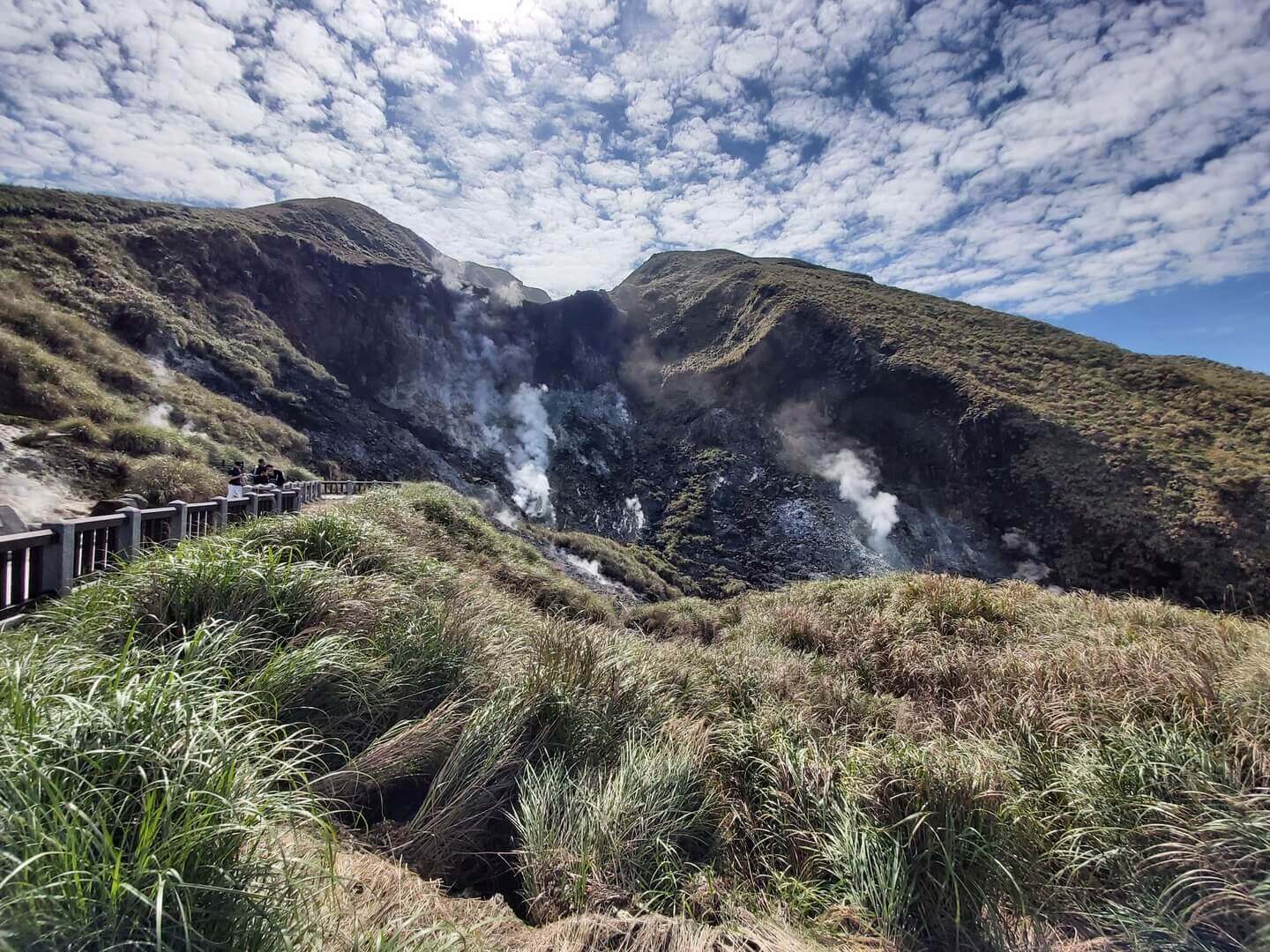 Starting from Xiaoyoukeng Recreation Area, the most popular attraction in Yangmingshan National Park. Xiaoyoukeng, literally means the “little oil pit”, is a post-volcanic geological landscape area. The scenic trail around Xiaoyoukeng offers close-up views of the pit from different angles, where you can see and smell the steam coming out of the cracks, and the sulfur crystals around the fumaroles, as if you can feel the breath of a dormant volcano.